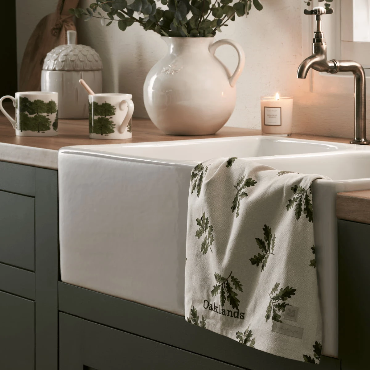 An elegant and timeless design that showcases the beauty of nature, featuring a delicate hand painted acorn and oak leaf motif on a soft neutral background. Inspired by Sophie’s love of nature and woodlands, this tea towel is perfect for adding a touch of autumnal charm to your kitchen. The tea towel has a handy ‘loop’ in the top left corner, so you can hang it up in your kitchen.