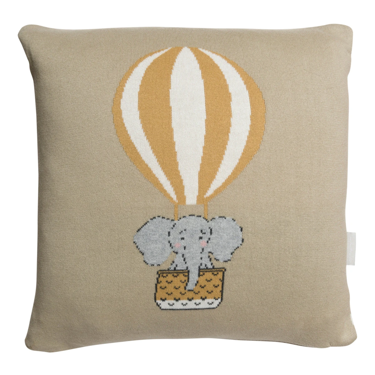 This adorable cushion is perfect for their bedroom and cosying up to in the evening, featuring a cute little elephant floating away in a hot air balloon on a natural coloured background. The reverse makes a lovely statement too, with elegant white stripes.