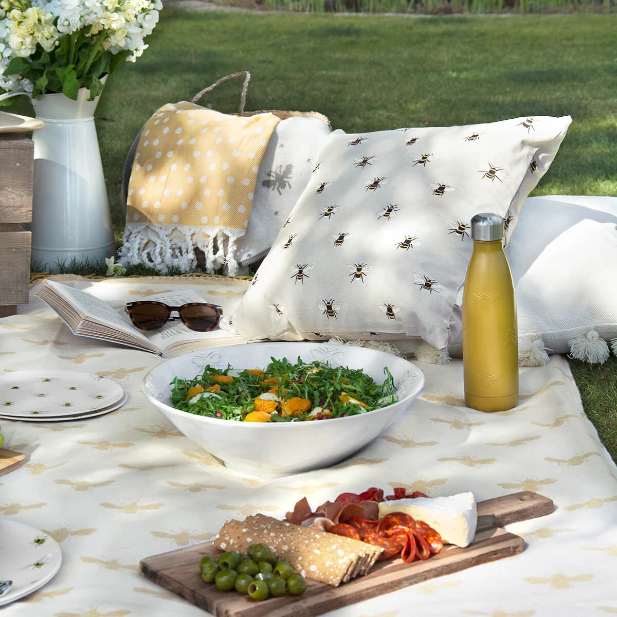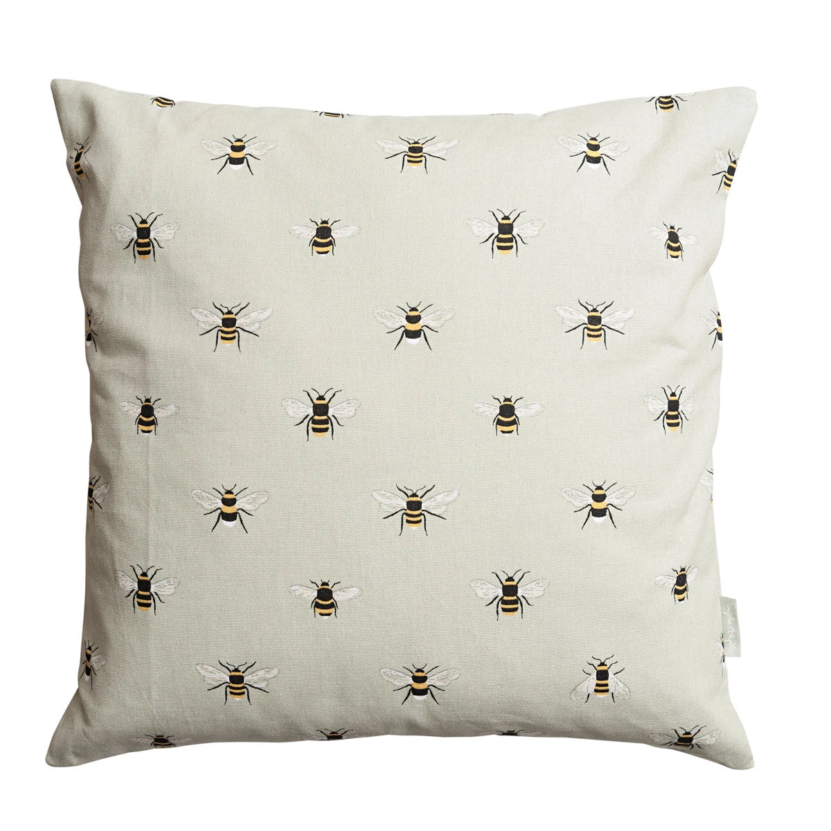 A wonderful cushion to bring some comfort and style to any room in your home – kitchen, bedroom, dining room or even popped on a garden bench in the summer. Covered in bees on a pale green background, it has a covered zip on the back and a quality duck feather filler. Our lovely Bees fabric is also available by the metre so that you can create your own curtains, blinds and more.