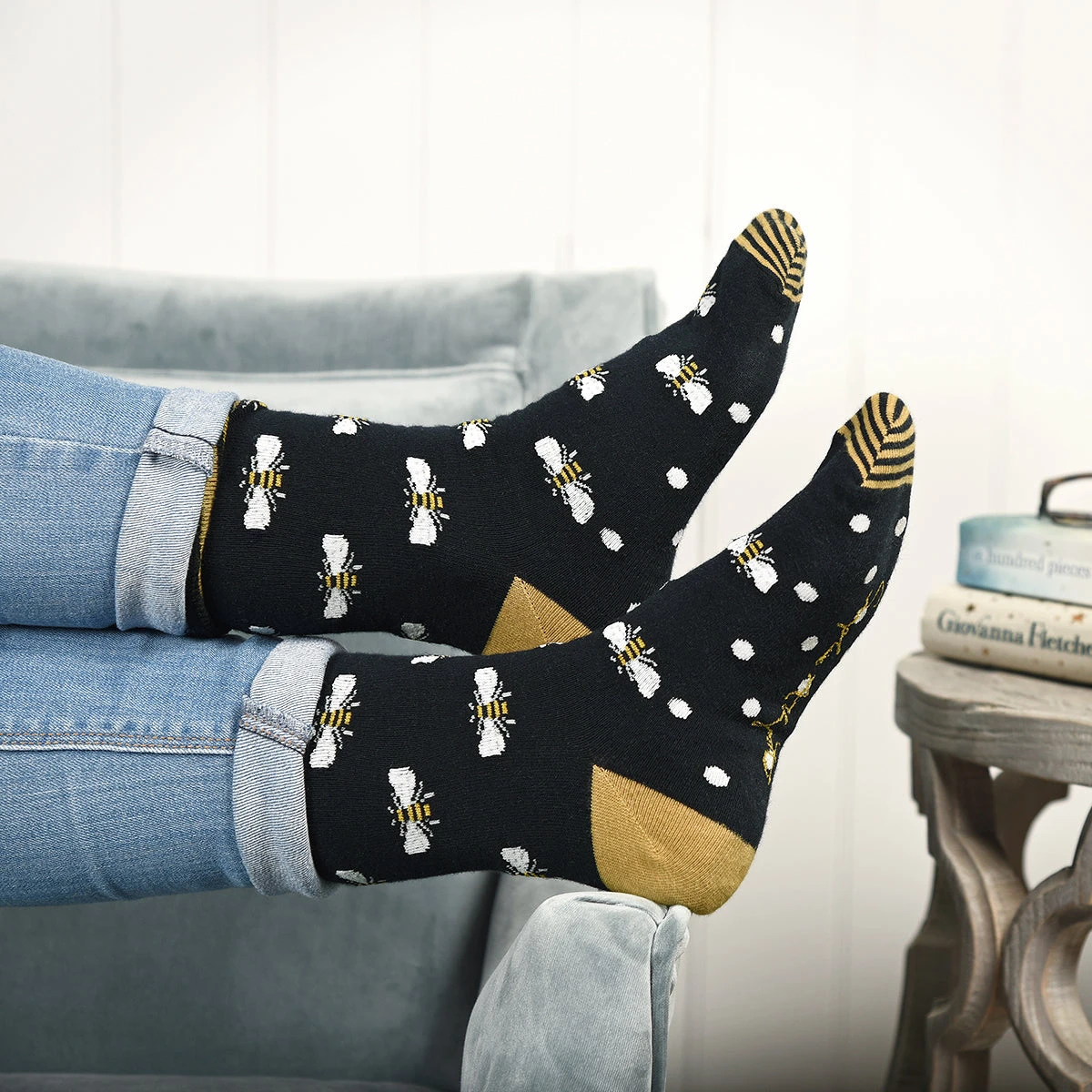 These bee-utiful socks feature buzzing bees on a navy background. Available in one size, these lovely socks are sure to make a stylish gift, you can never go wrong with a pair of socks.