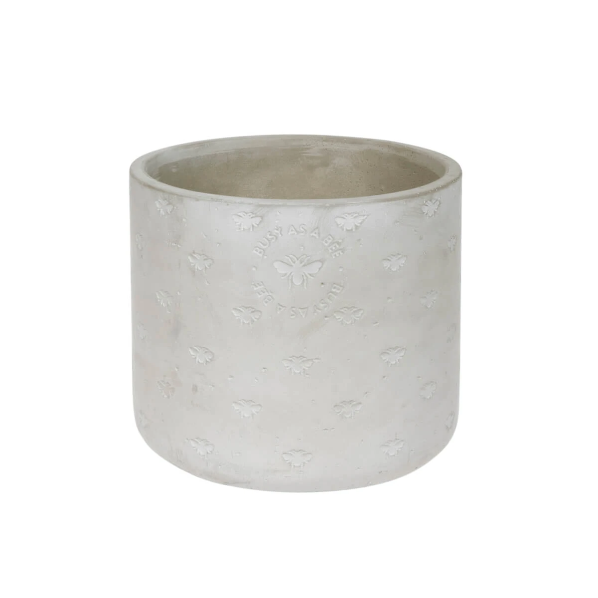 These rustic cement plant pots are perfect for both indoor and outdoor use and are available in three sizes. The bees design features a variety of buzzing bees with the words ‘Busy As A Bee’ written on the front. Great for growing herbs, spring flowers and summer blooms. Our cement lines have a rustic finish, celebrating imperfections and adding character at the same time! Please note there are no drainage holes.