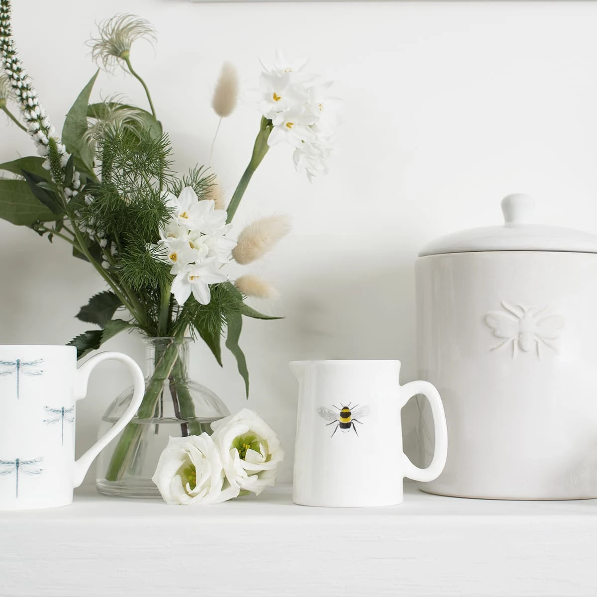 Treat yourself to one of our simple Bees fine bone china jugs. Available in four sizes – mini, small, medium, and large. You’ll find the perfect size for milk, cream, water and other sauces. They also make a pretty flower vases for a kitchen, bedroom, or table setting. All our jugs come in a smart Sophie Allport gift box.