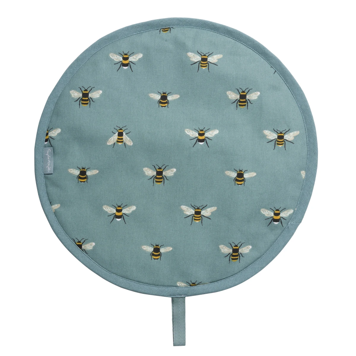 These round hob covers are perfect for keeping your prized cooker hobs scratch-free, clean and are effective at keeping the heat in. Covered in Sophie’s bee-autiful bees on a teal background, they are excellent for adding a touch of colour to any kitchen. There is a handy loop so it can be easily attached to the handle on your stove. Made from 100% cotton with a terry towelling base. We don’t recommend placing piping hot pans directly onto the cover.