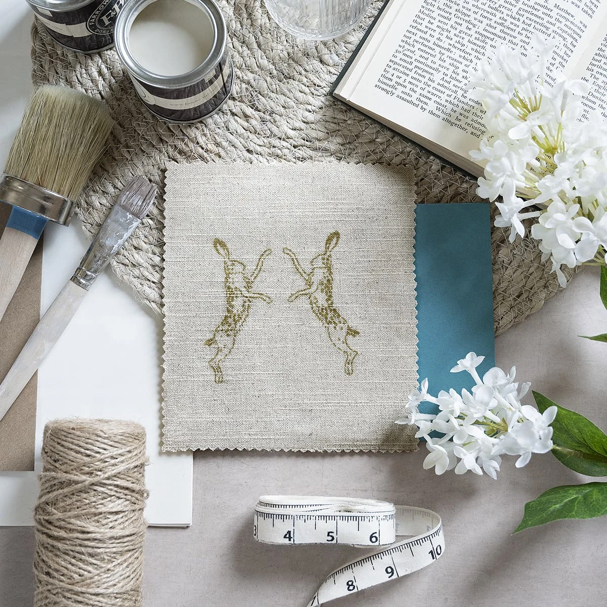 This beautiful boxing hares linen blend fabric is the perfect choice for making your own curtains and cushions. Made from a 55% linen and 45% cotton fibre blend, this fabric has a subtle slub texture that gives a rustic and natural feel and is available by the metre. The cotton element helps to give weight, strength, and support whilst helping reduce wrinkle risk. Featuring the wildlife spectacle of boxing hares, which can be often seen during the spring months and is inspired by the hares seen in the fields close to Sophie’s home in rural Lincolnshire. Sophie’s delicate dark stone hares silhouettes pop against the neutral ground on this stylish design.