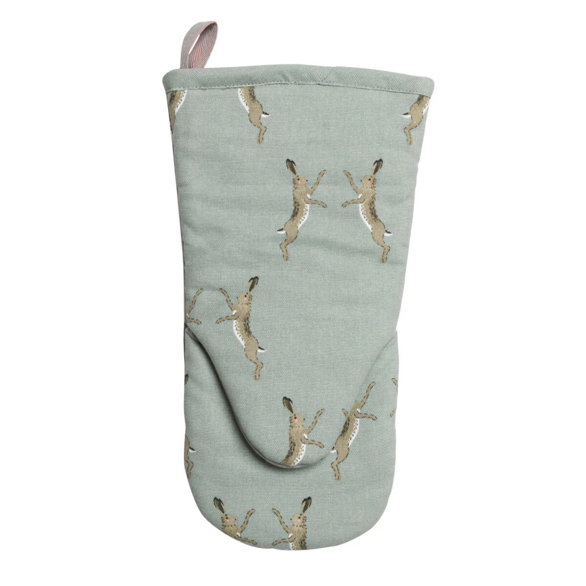 This duck egg grey oven mitt is sure to make a stylish country statement in any kitchen and features the wildlife spectacle of boxing hares, which can be often seen during the spring months and is inspired by the hares seen in the fields close to Sophie’s home in rural Lincolnshire. Perfect for moving hot pans and dishes around the kitchen. An excellent gift idea for those that love to cook and bake.
