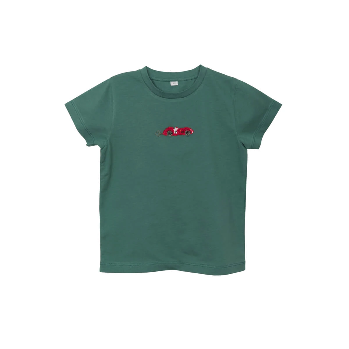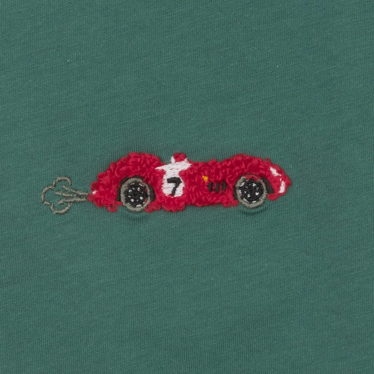 Made from 100% organic cotton, this adorable kids t-shirt has a unique car design, made up of different embroidered techniques for a fun and playful finish. This green t-shirt is perfect for the summer holidays! Excellent for kids who love cars, this fun top makes a lovely gift idea for little ones.
