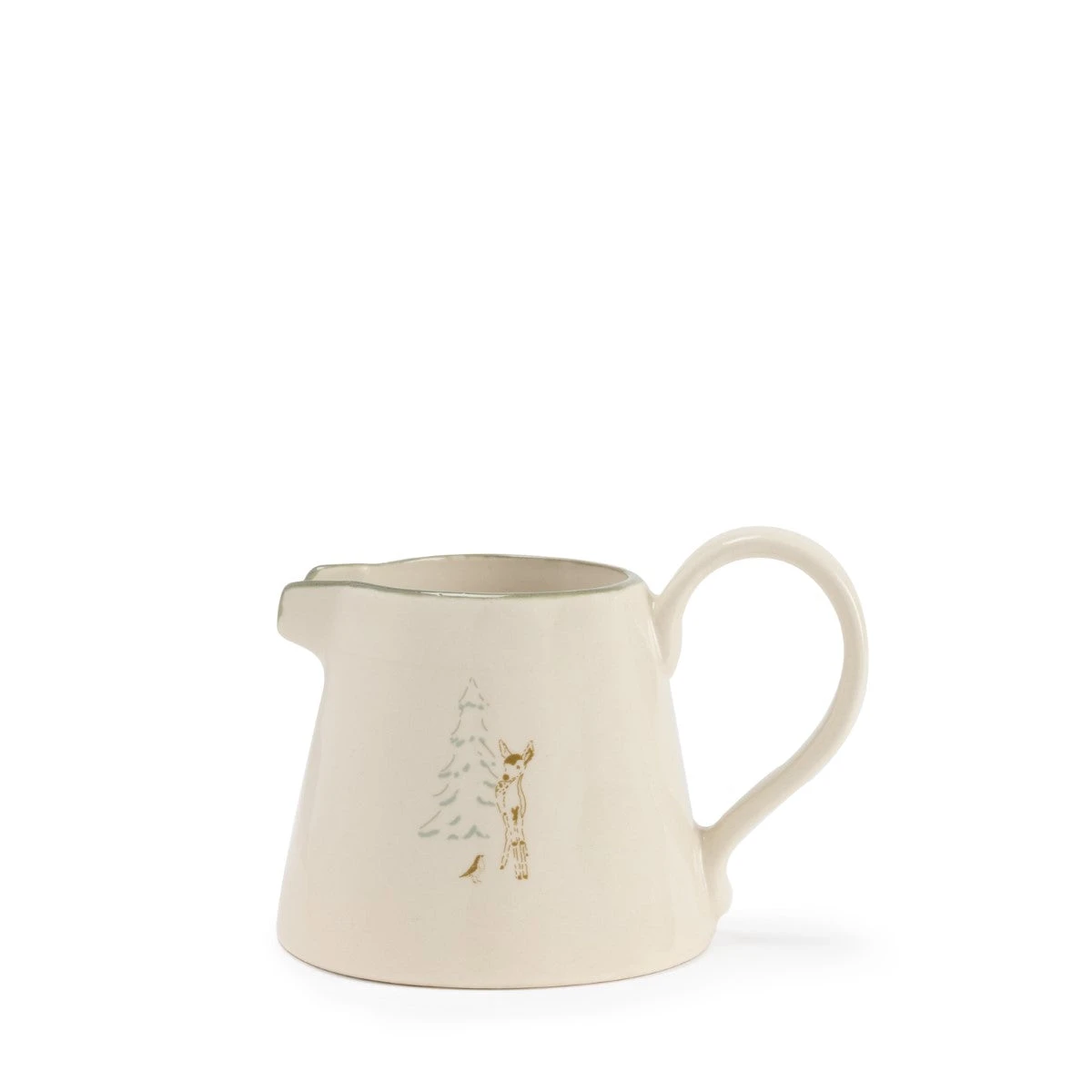 We adore this stoneware jug from our charming Christmas Stags collection. Featuring a delicate outline of an adorable fawn in the snowy forest, with a contrasting green rim, it is perfect for housing cream for your mince pies or milk for your Christmas coffee.