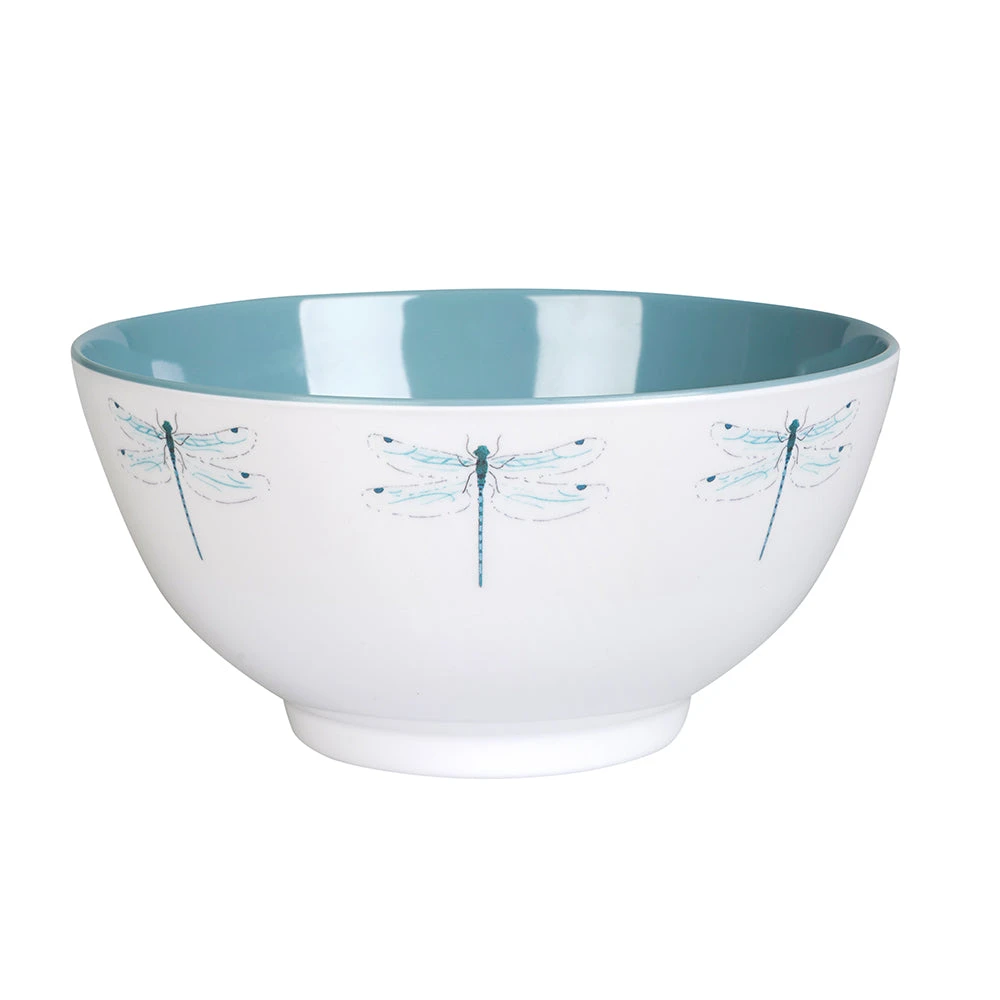 Regal dragonflies flitter around the edge of this melamine bowl – ideal for kids in the garden or family picnics over the summer. The contrasting dusky blue inner coordinates beautifully with the whole Dragonfly picnic collection.