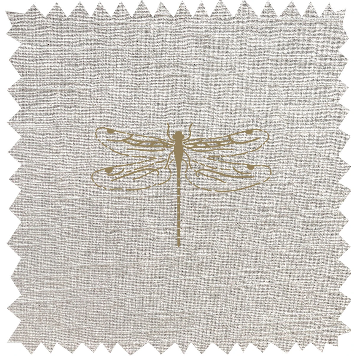 This delightful dragonfly linen blend fabric is the perfect choice for making your own curtains and cushions. Made from a 55% linen and 45% cotton fibre blend, this fabric has a subtle slub texture that gives a rustic and natural feel and is available by the metre. The cotton element helps to give weight, strength, and support whilst helping reduce wrinkle risk. Featuring Sophie’s delicate dragonfly silhouettes in a beautiful gold colour that pop against the neutral ground on this stylish design.