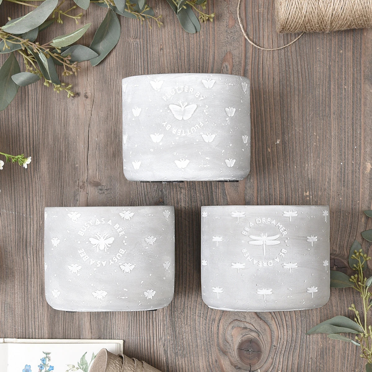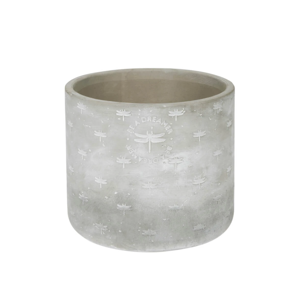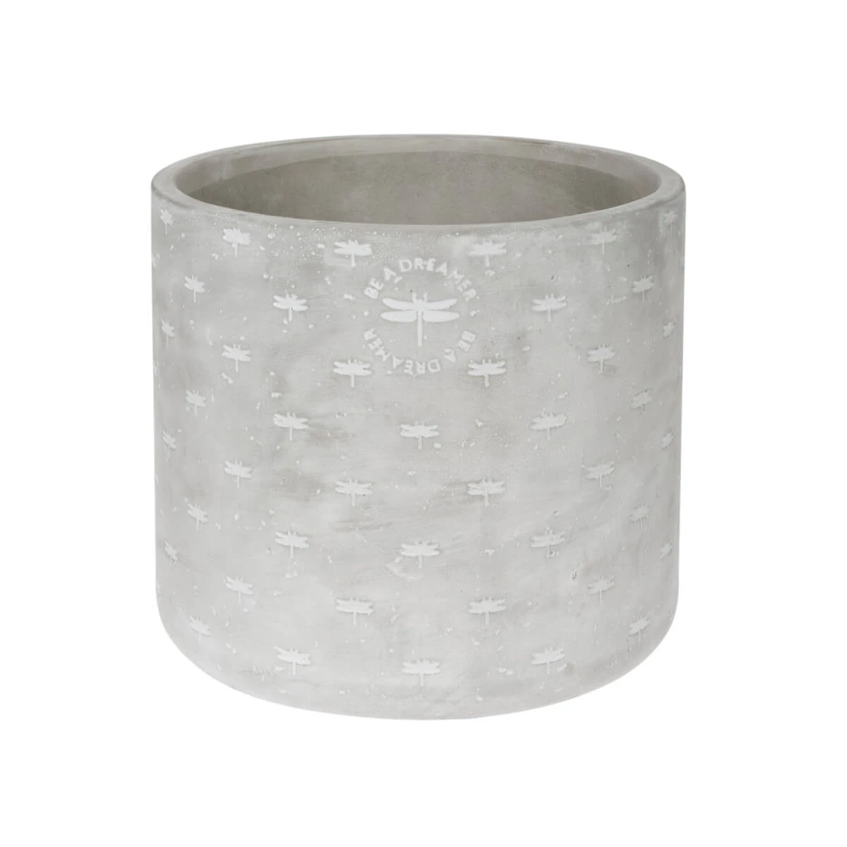 This rustic plant pot features a range of elegant dragonflies with the words ‘Be A Dreamer’ written on the front. Made from cement and can be used both indoors and outdoors. Perfect for growing spring daffodils, summer roses or tasty herbs all year round. Our cement lines have a rustic finish, celebrating imperfections and adding character at the same time! Please note there are no drainage holes.
