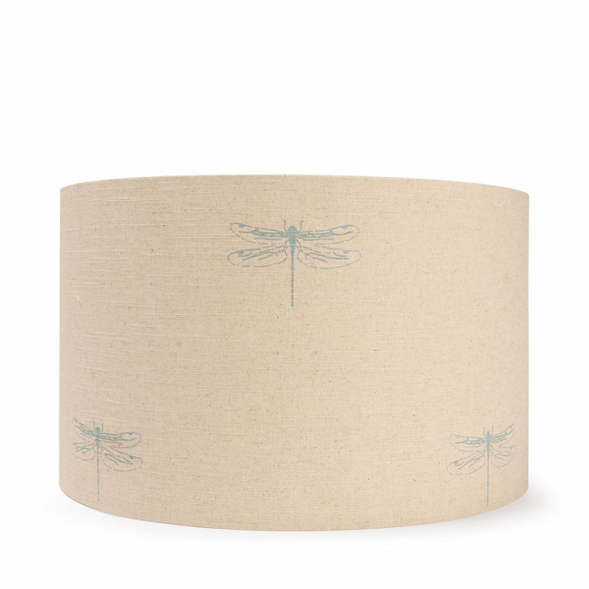 Perfect to add a touch of colour to the interiors of any room, this handmade drum lampshade is made from our teal Dragonfly linen blend fabric. Sophie’s delicate teal blue dragonfly silhouettes pop against the neutral ground on this stylish design. The light shade has an adapter so that it fits all standard UK and EU fittings. The reversible gimble (wire inner) means the shade can be used on a standing lamp, table lamp or hung from a ceiling bulb. If you are looking for some co-ordinating pieces we have blinds, curtains and fabric by the metre in our Dragonfly design.