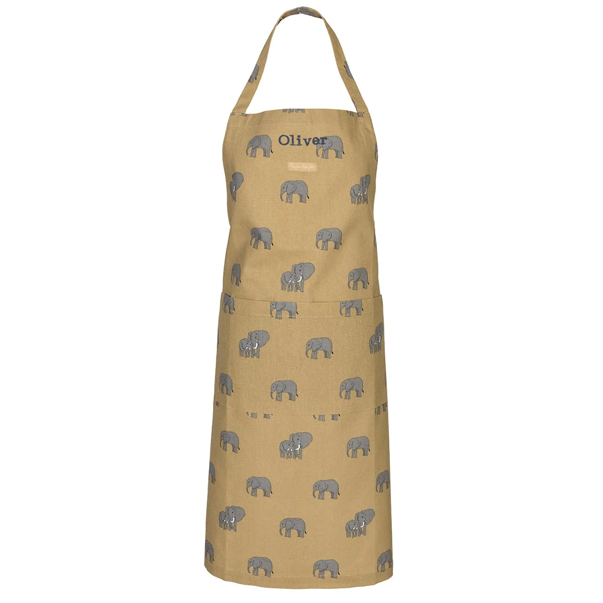 A lovely design, featuring African elephants on a mustard coloured background. This adult apron will brighten up any kitchen and would make a lovely gift for a wildlife lover!