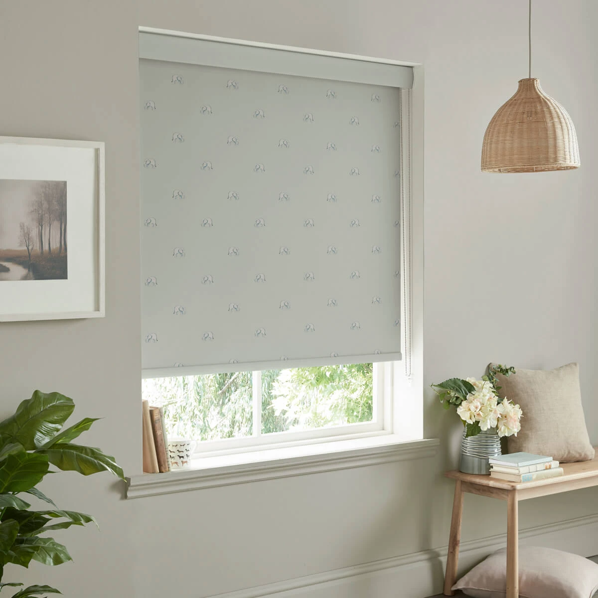 This made to measure roller blind is sure to add a stylish touch to any home, featuring Sophie’s magnificent elephant illustrations on a green-grey coloured ground. Excellent for any room in your home, including living rooms, bedrooms, hallways, dining rooms, kitchens and bathrooms.