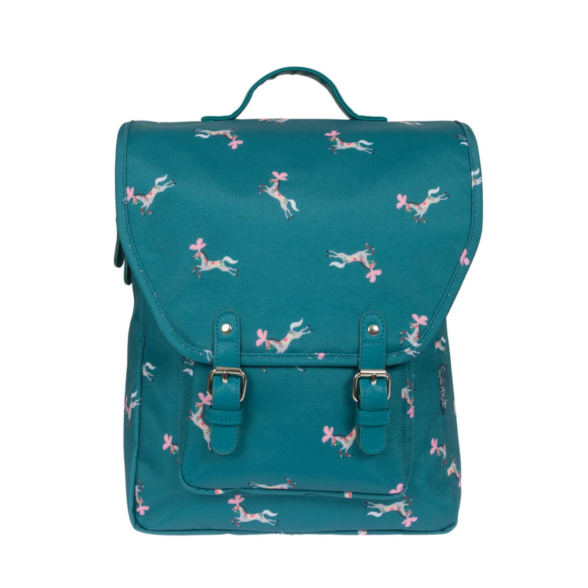 This kids satchel is perfect for back to school, weekend trips away and days out! It’s sure to make a smart and stylish statement and is dotted with fun fairground ponies on a teal coloured background. There is a handy name tag area on the reverse and a sturdy handle to hang on a school peg or hook at home.