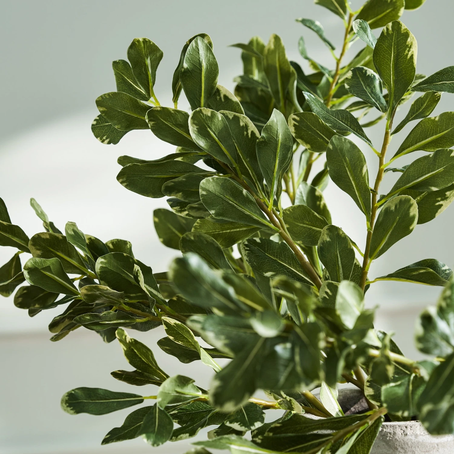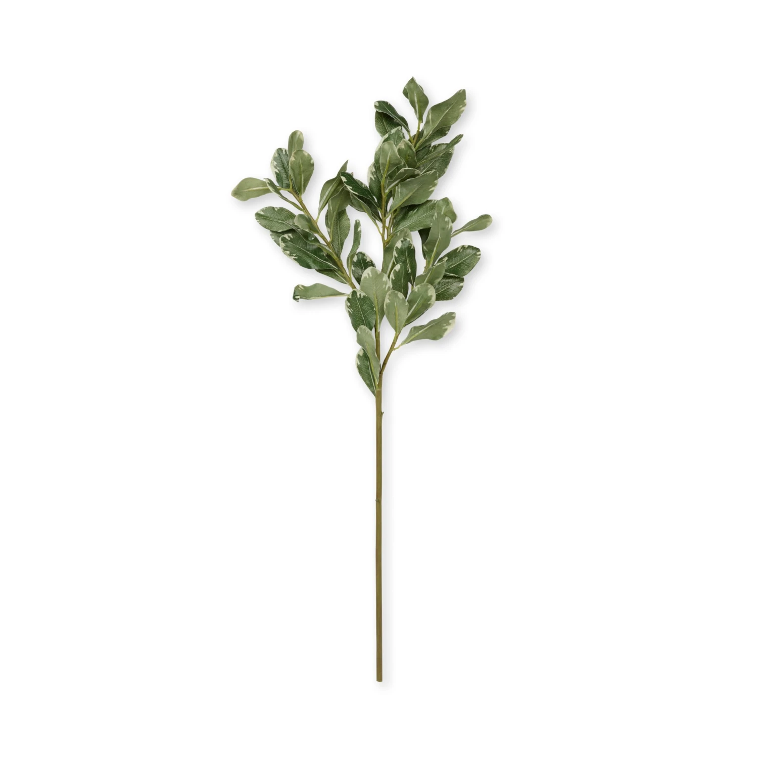 Beautifully elegant and difficult to tell that it’s not the real thing, this faux pittosporum leaf is adorned with intricate white and green detailing on every leaf. A lovely complement to an artificial bouquet or to pair with a single stem or two for a simpler look.