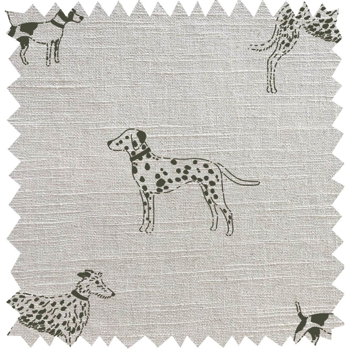 This fabulous Fetch linen blend fabric is the perfect choice for making your own curtains and cushions. Made from a 55% linen and 45% cotton fibre blend, this fabric has a subtle slub texture that gives a rustic and natural feel and is available by the metre. The cotton element helps to give weight, strength, and support whilst helping reduce wrinkle risk. Features charcoal grey illustrations of Sophie’s dachshunds, dalmatians, lurches and jack russells on a neutral ground.