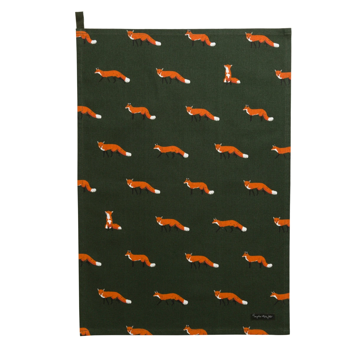 Fitting for an autumnal kitchen, this forest green tea towel is dotted with friendly red foxes and would make a lovely gift for any nature enthusiast! There is a handy ‘loop’ in the top left corner of the tea towel, so you can hang it up in your kitchen.
