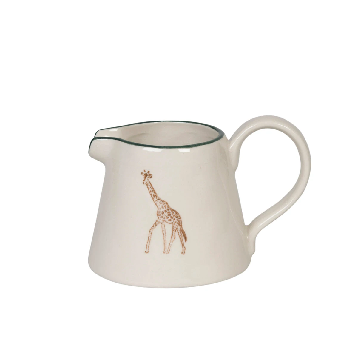 This elegant mini jug makes a pretty statement in any kitchen and is perfect for serving milk, cream, sauces or even using as a table decoration with offcuts of small garden flowers. Made from stoneware this jug features a pretty giraffe with a contrasting green rim.
