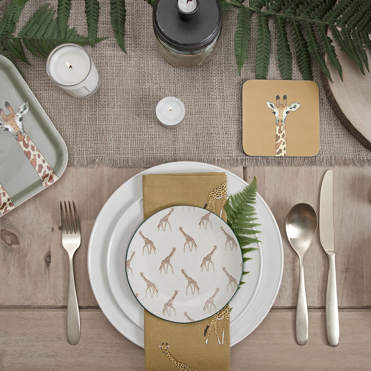 These beautiful cotton napkins are sure to add a touch of colour and elegance to any table setting, featuring these fabulous giraffes on a tan ochre background. Perfect for creating a stylish table setting for any occasion.