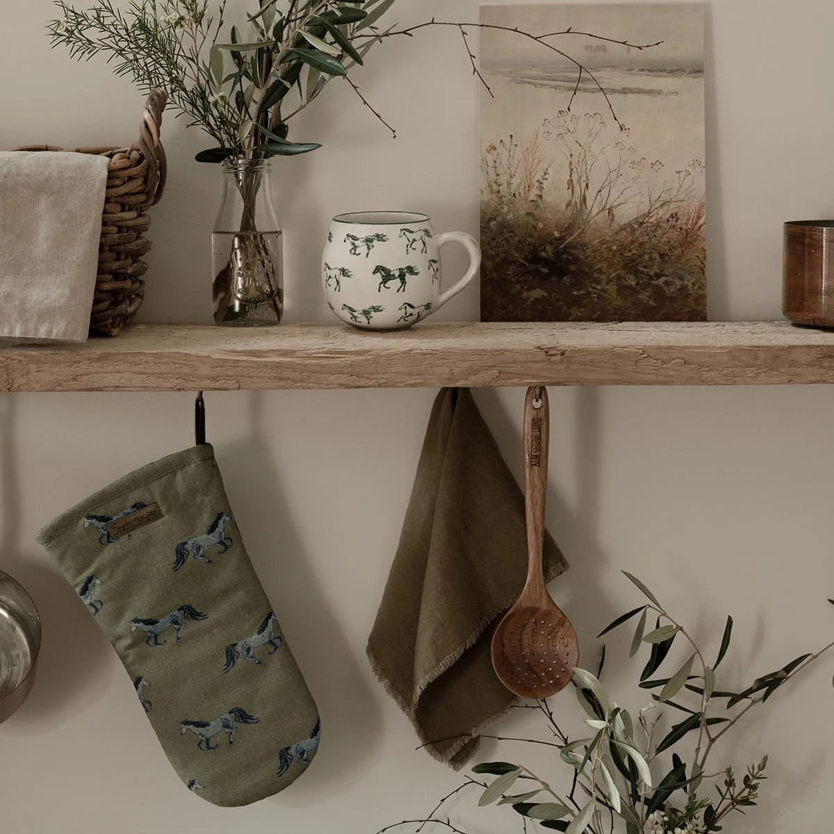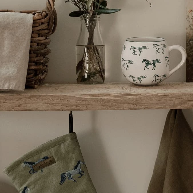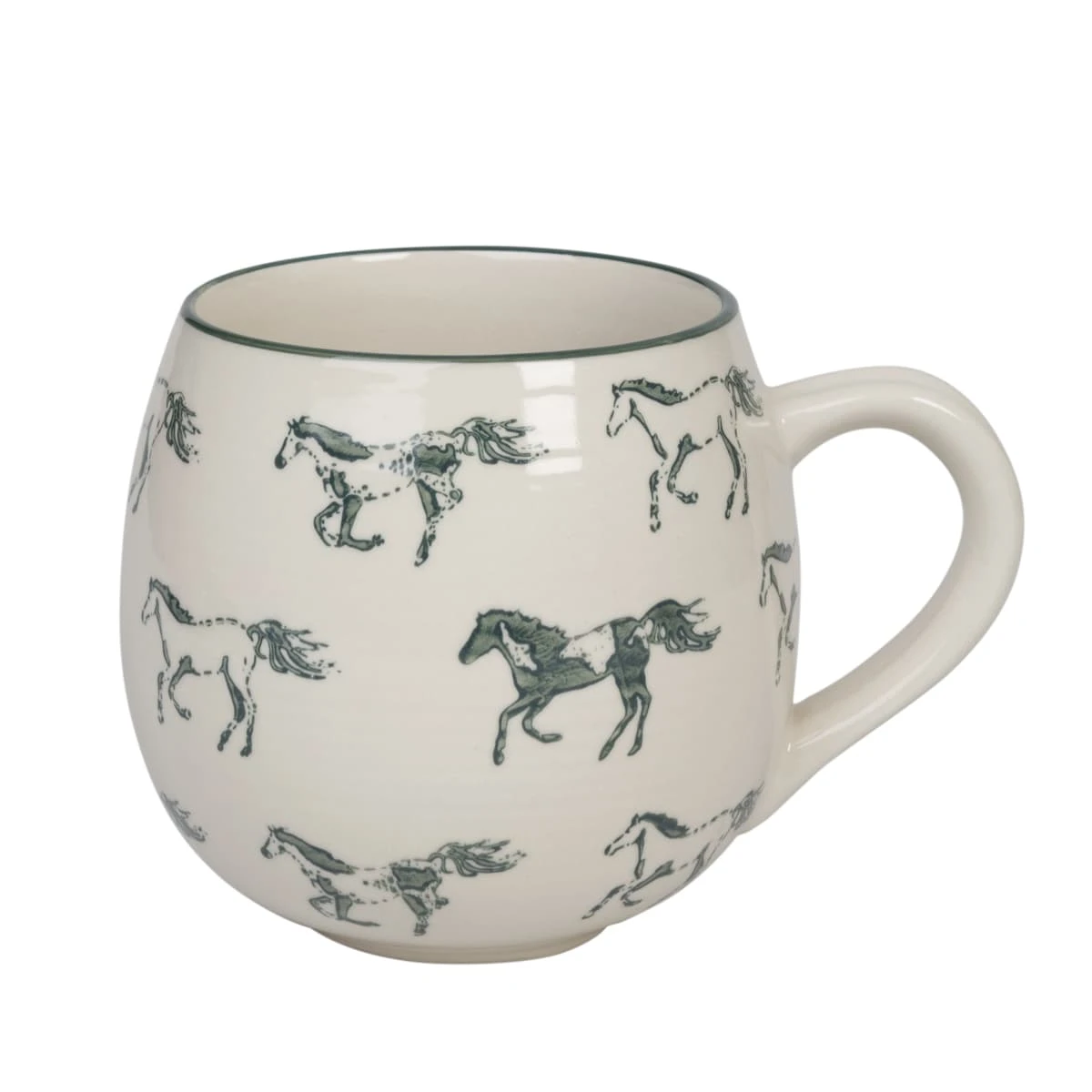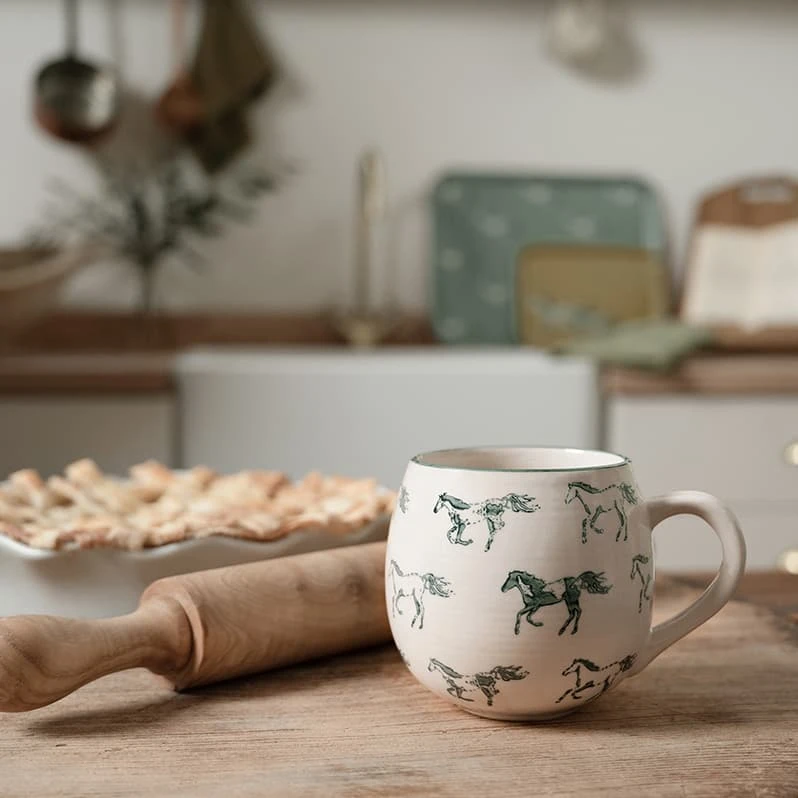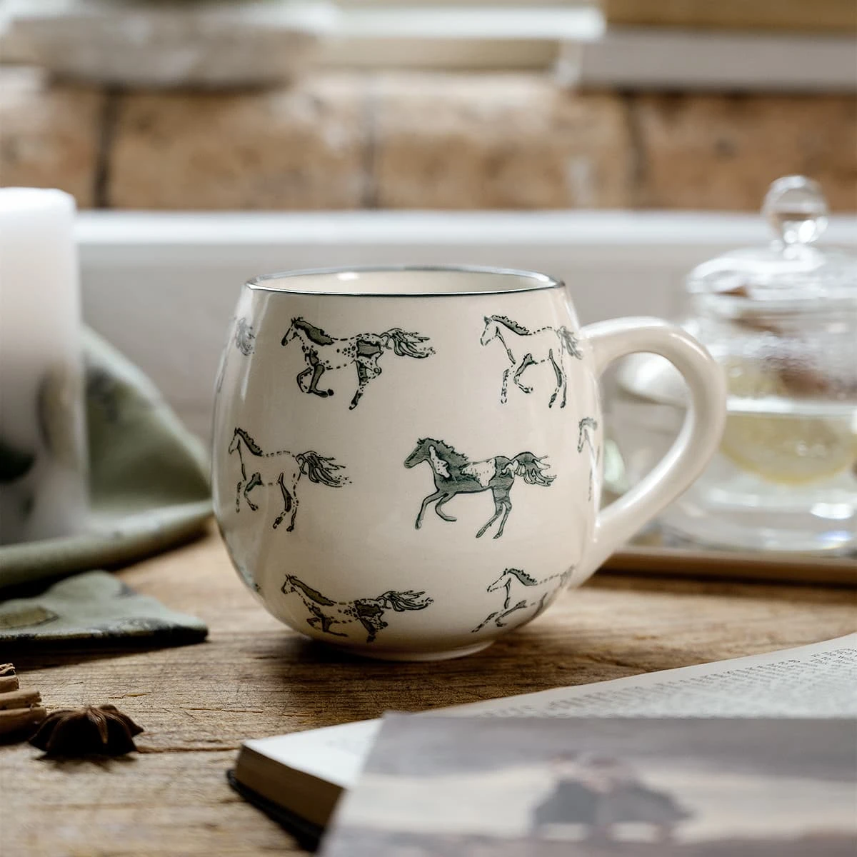 This super stylish stoneware mug is perfect for sipping your morning coffee or winding down in the afternoon with a cuppa. Featuring delicate moss green outlines of magnificent grey horses sprinting, this lovely mug holds 500ml and would make an excellent gift idea for any horse rider or enthusiast.