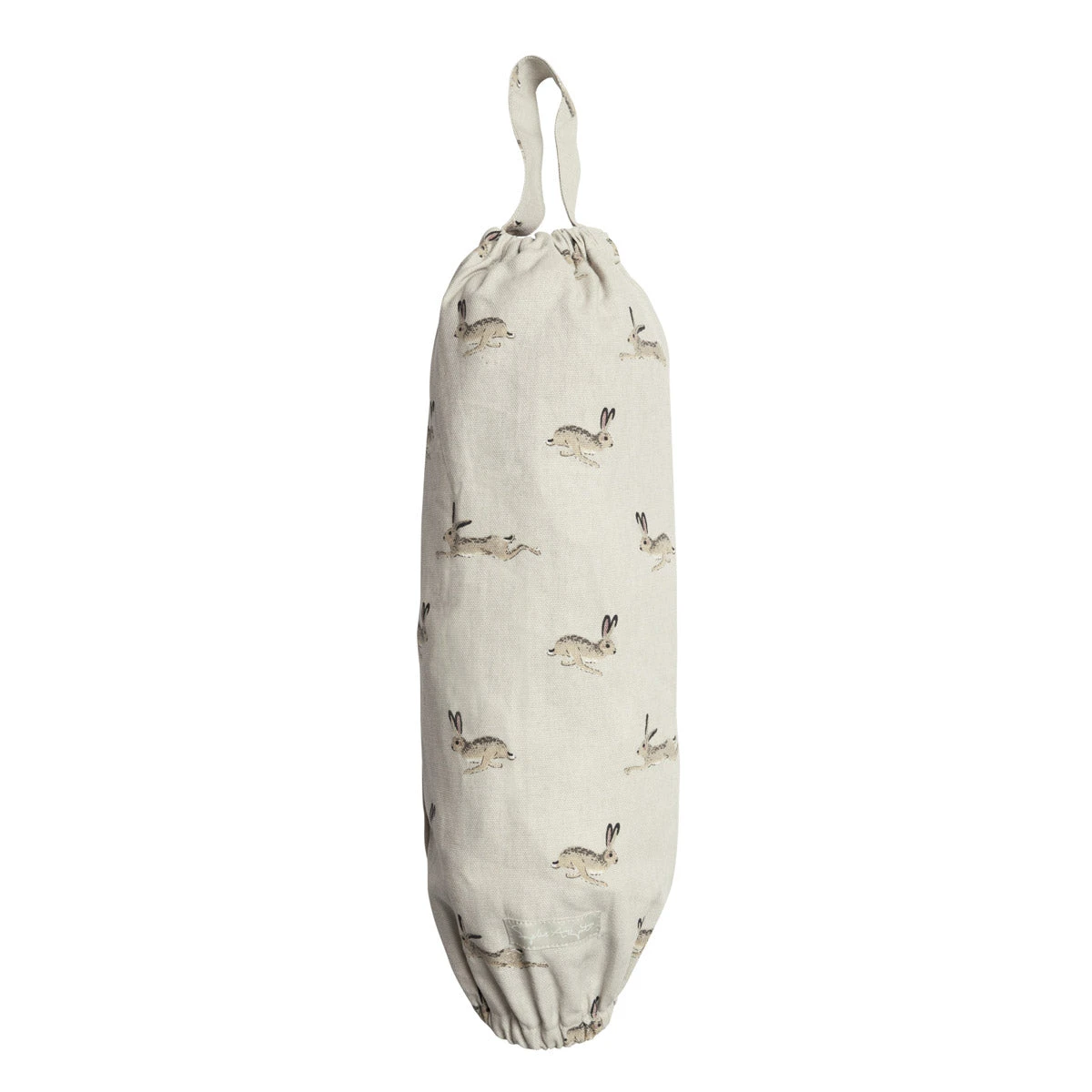 Keep that stash of carrier bags stored in style and ready for recycling with this Carrier Bag Holder from our Hare Collection. Pop used plastic bags in the elasticated opening at the top, and simply pull one out of the elasticated bottom when you need one. It holds approximately 30 bags. A practical and stylish gift for your home!