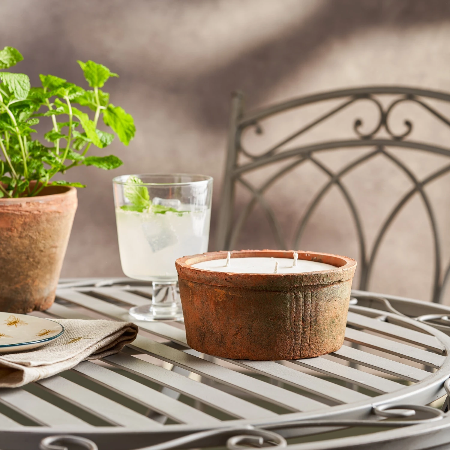 Keep flies and mosquitoes at bay when relaxing or entertaining outdoors on a spring or summer evening with this small or large honey spiced lavender and citronella candle. The rustic design of the terracotta pot will be unique to each candle, as the variations in texture and tone are both hallmarks of a natural stone product. Perfect for casting a soft glow while dining alfresco.