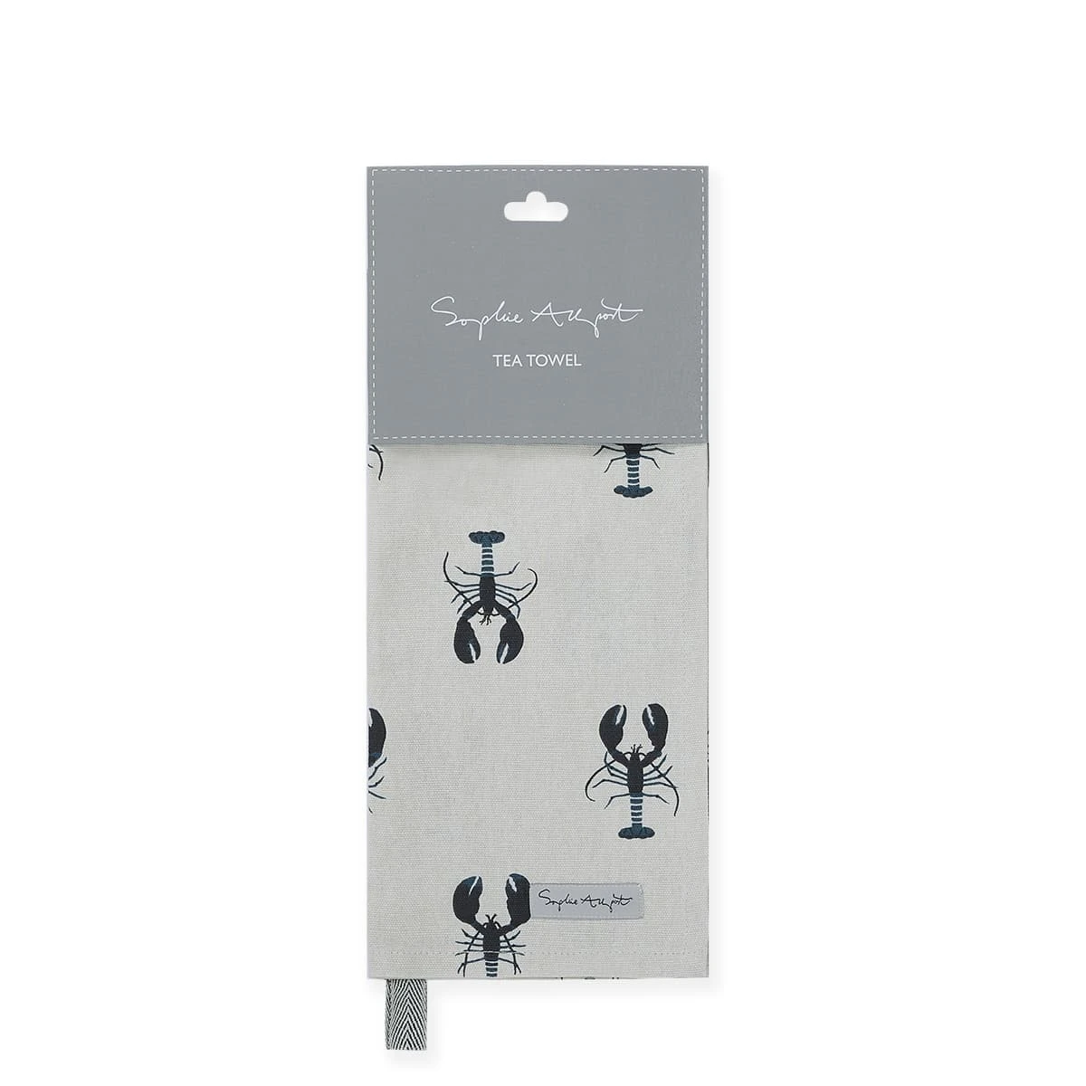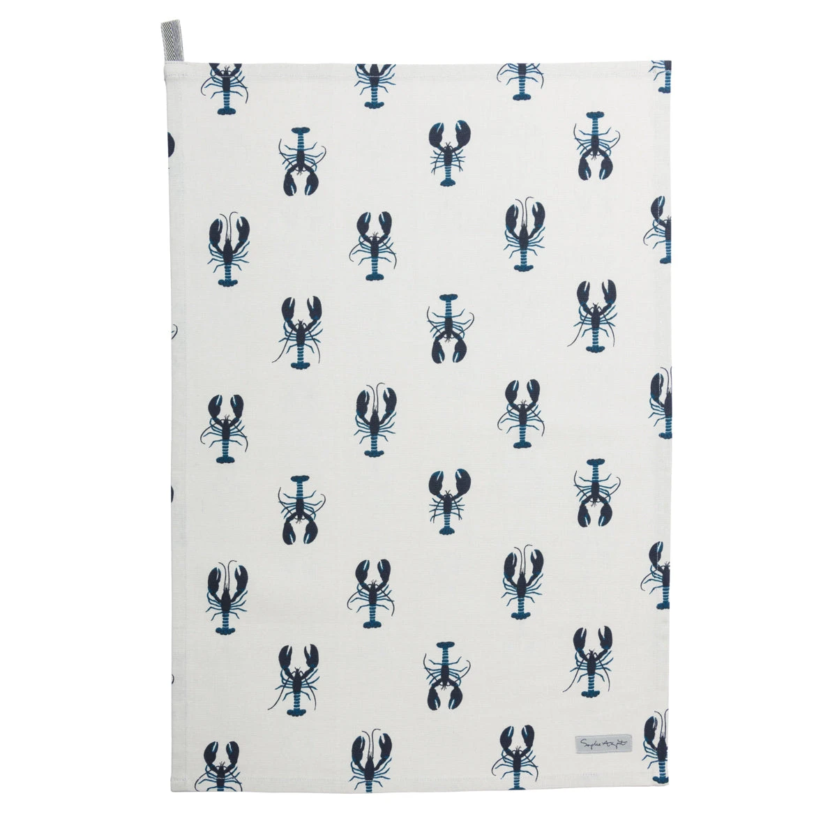 Inspired by the coast, this stylish tea towel features a range of lobsters showcasing their extensive claws, their slender bodies and their muscular tails, with subtle hints of energetic blues on a dune white background. There is a handy ‘loop’ in the top left corner of the tea towel, so you can hang it up in your kitchen.