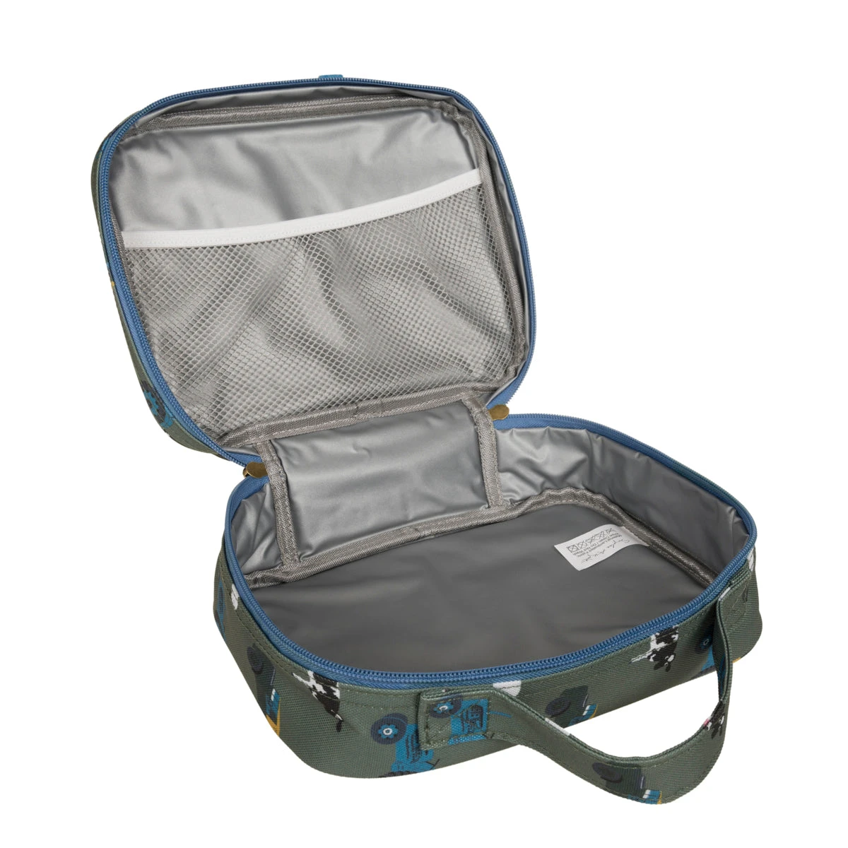 Easy to wipe clean, tractors, Land Rovers, sheep and cows sit against this green On The Farm lunch bag. It has adorable tractor detailing and will particularly suit an aspiring young farmer.