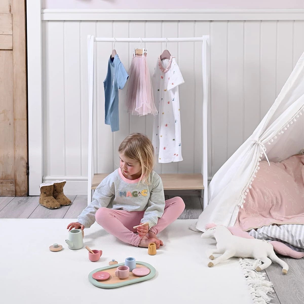 This sweet children’s sweatshirt is perfect for those who believe in fairies, with the word ‘magic’ written on the front in textured detailing. It comes in a lovely grey colour with a light pink neckline. Available in four sizes from ages 2 to 6, this magical jumper makes a wonderful gift idea for little ones.