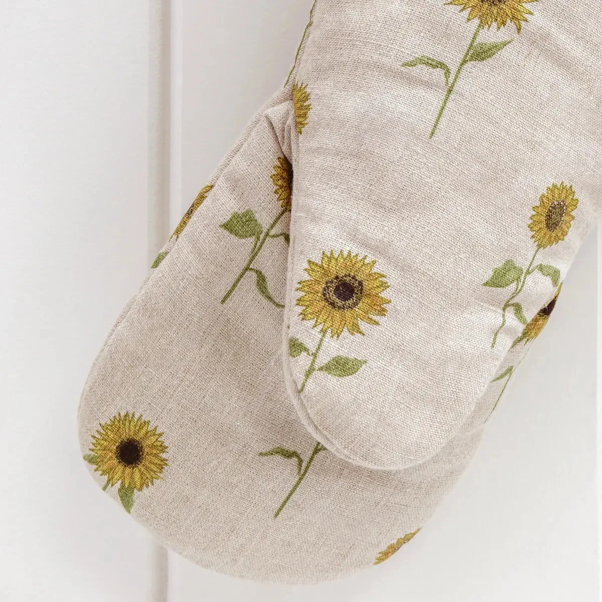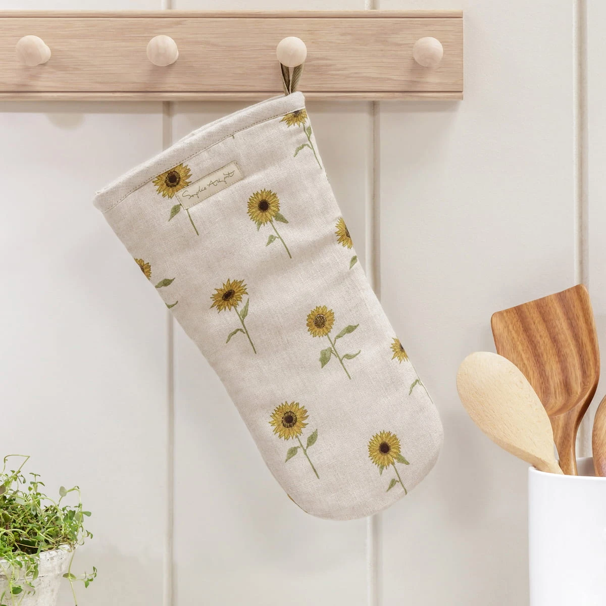 Protect your hands when moving hot trays and dishes around the kitchen with this stylish and practical oven mitt in our stunning Sunflower design. The design features Sophie’s bright and cheerful sunflower illustrations on a neutral background, a perfect gift for any baking enthusiast.