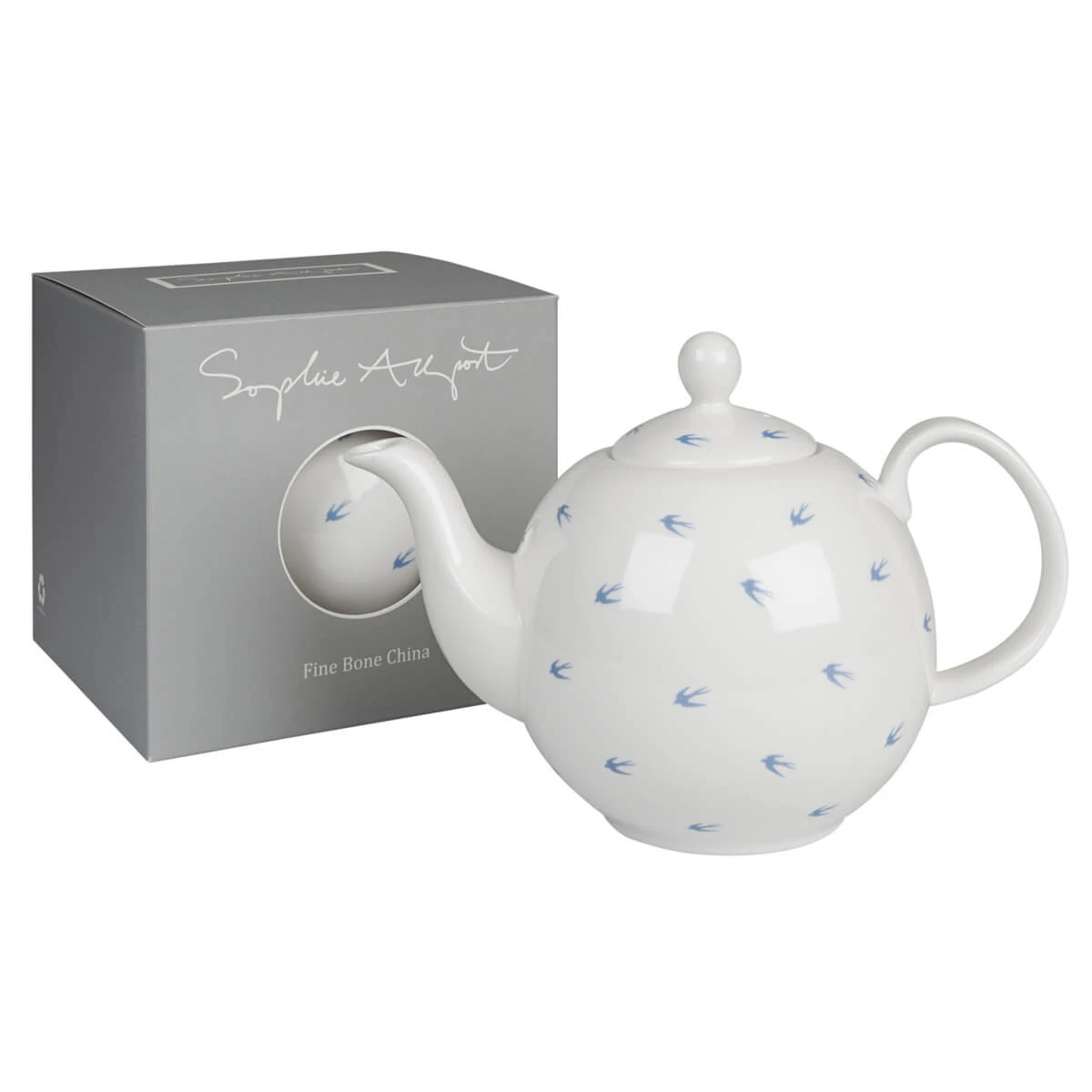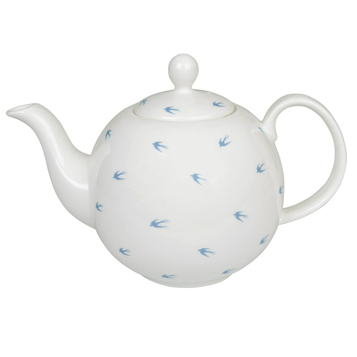 A flight of blue swallows swoop and glide on the front and back of this fine bone china teapot. It’s a great pourer and perfect for a truly indulgent cuppa. It would make a lovely gift for a loved one.