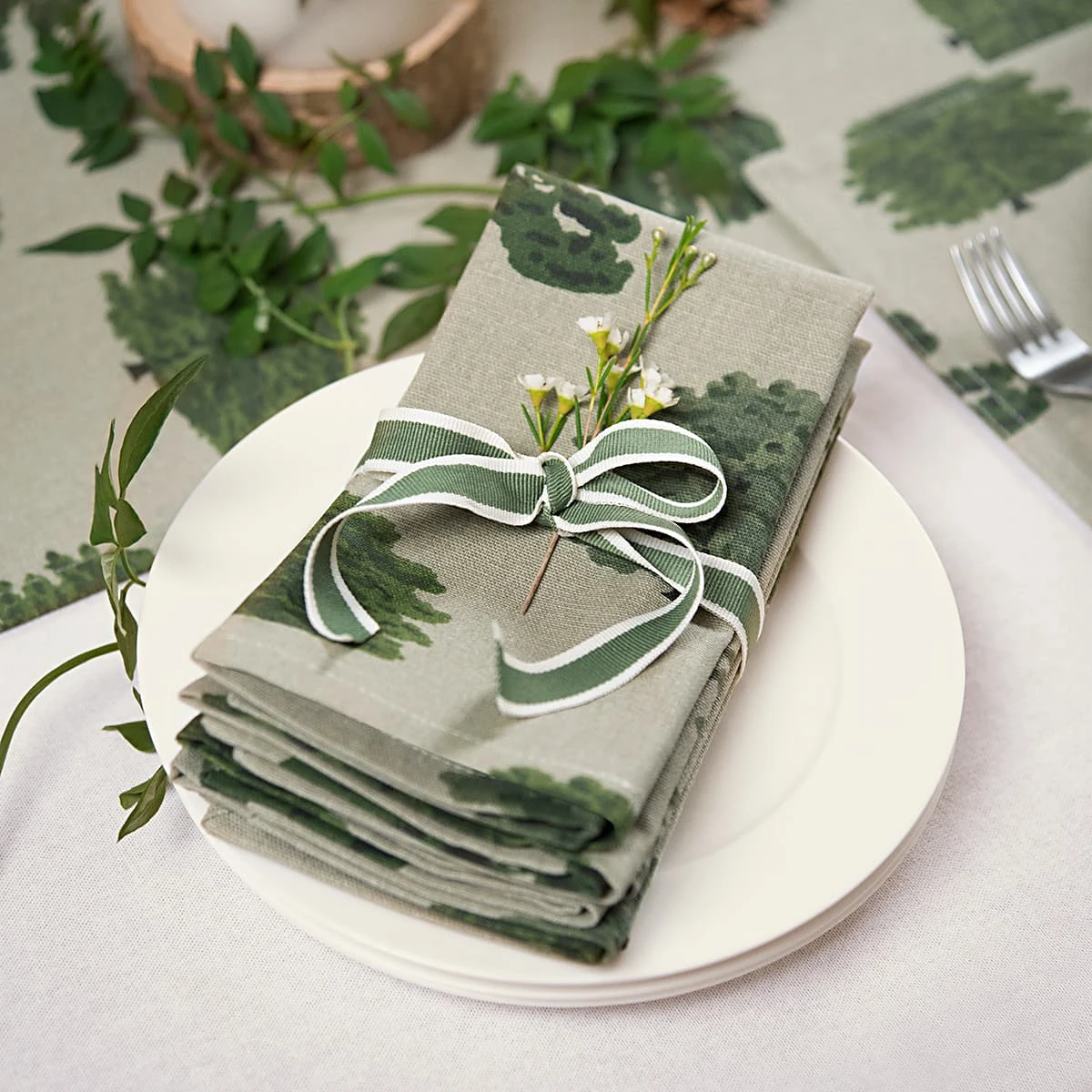 Inspired by Sophie’s love of nature and woodlands, these fabric napkins feature her illustrations of enchanting oak and pine trees on a pale moss green ground. These beautiful cotton napkins are sold in a set of four and are perfect for creating a stylish table setting for any occasion.