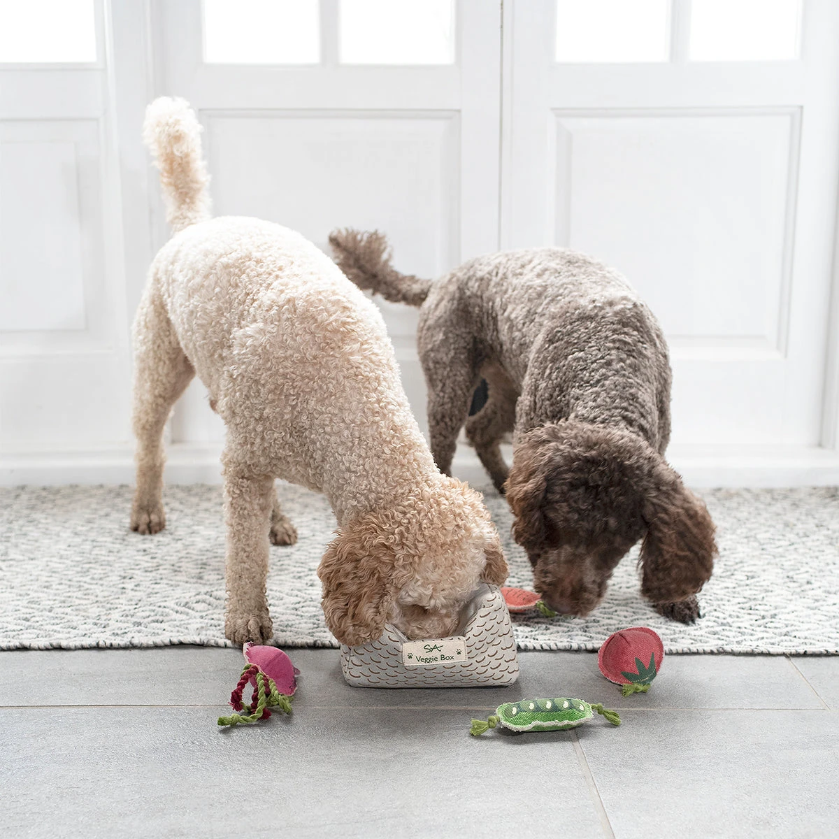 Part of the Home Grown collection, this dog toy set features some of our favourite vegetables and is sure to keep your beloved pet entertained. Dog toys include a beetroot, tomato, carrot, peas in a pod and a veggie box. A pawsome treat and gift for your dog!
