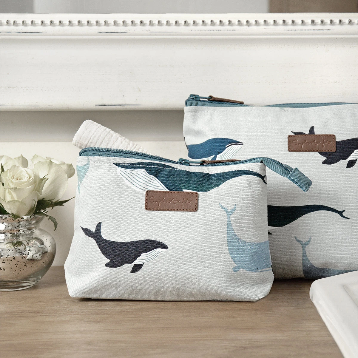 Made from cool grey canvas fabric, this stylish makeup bag is covered in magnificent whales. Perfect for keeping your makeup essentials together and safe and keeping in your handbag.