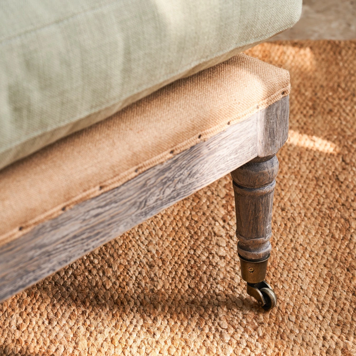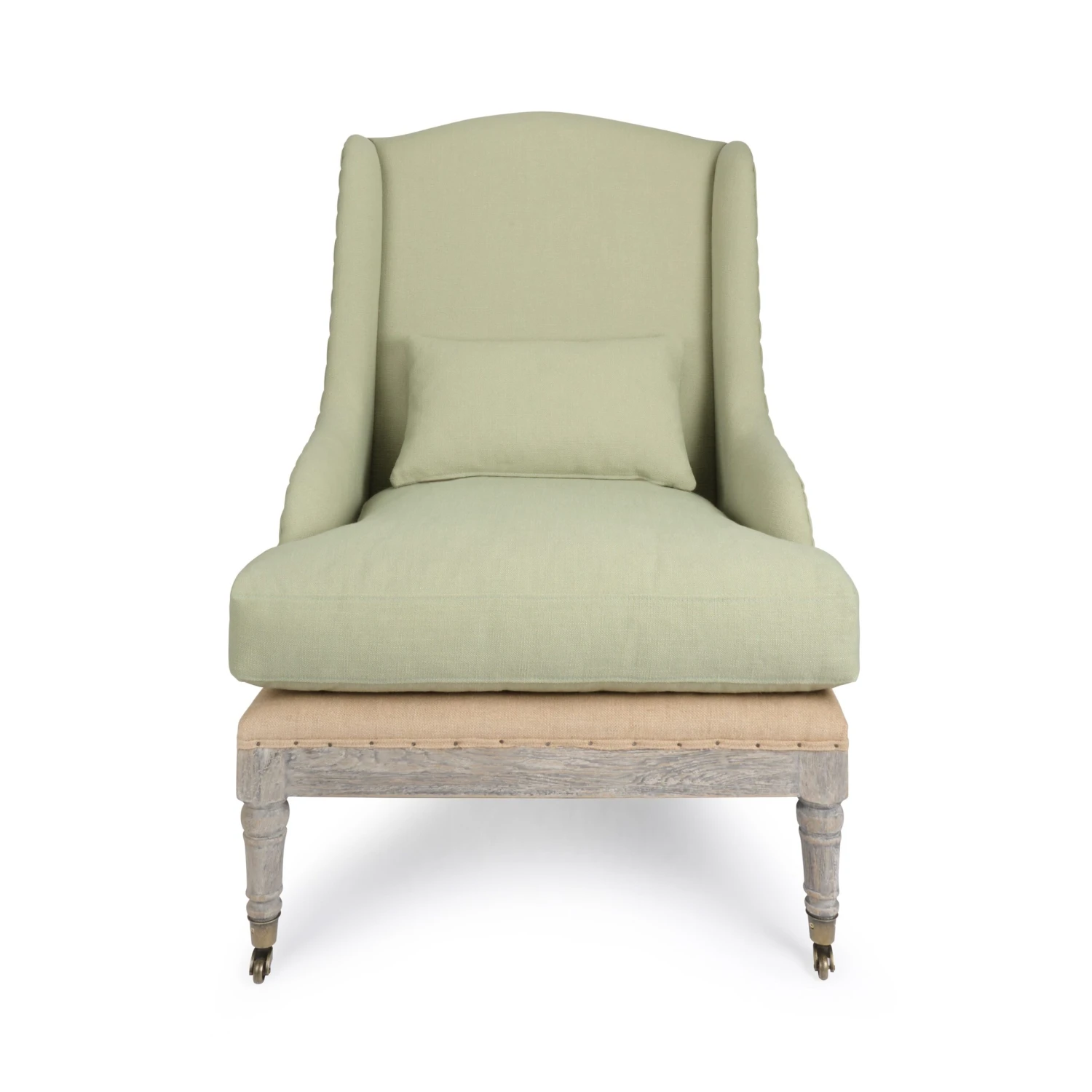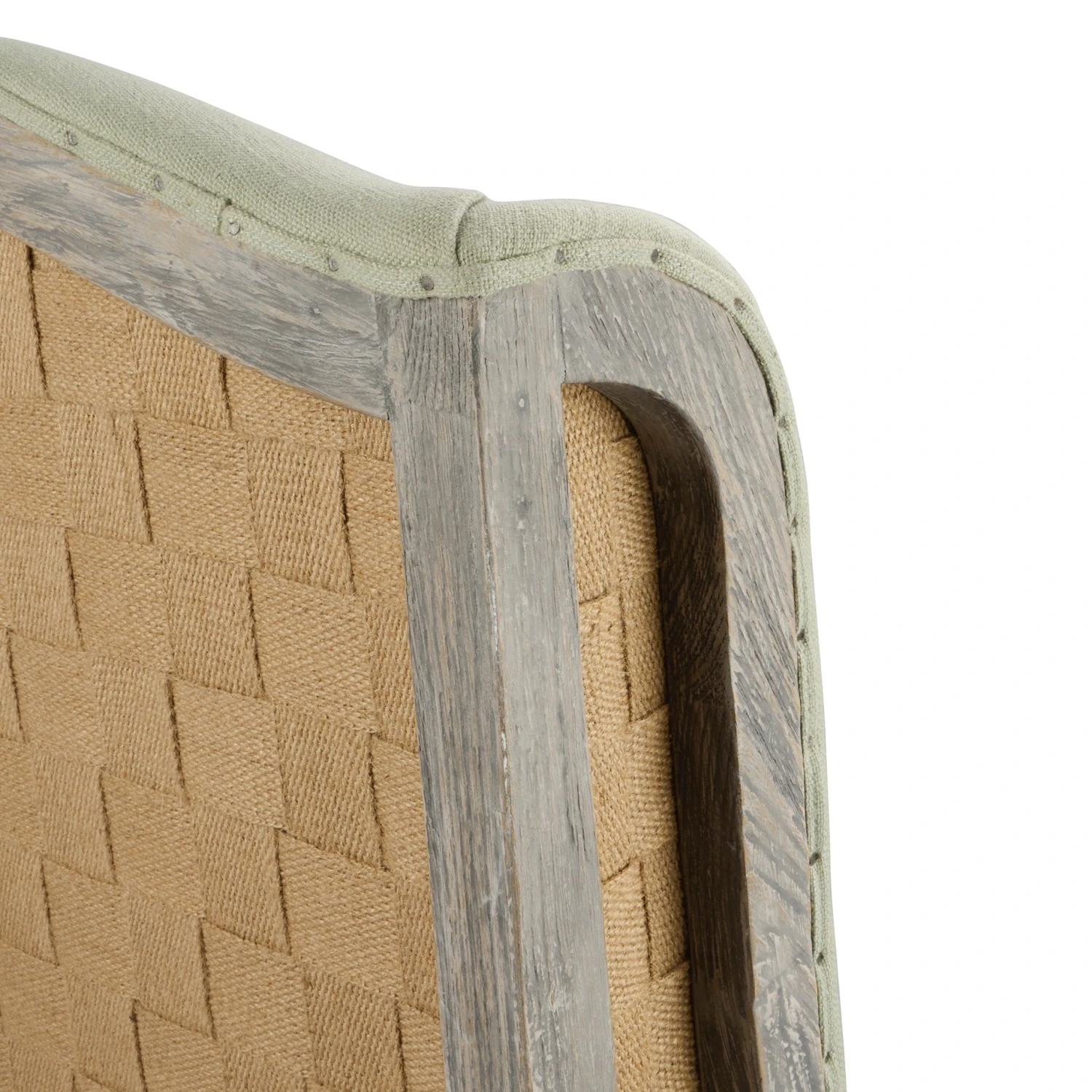 - Made from oak, jute and a linen mix fabric in pale green