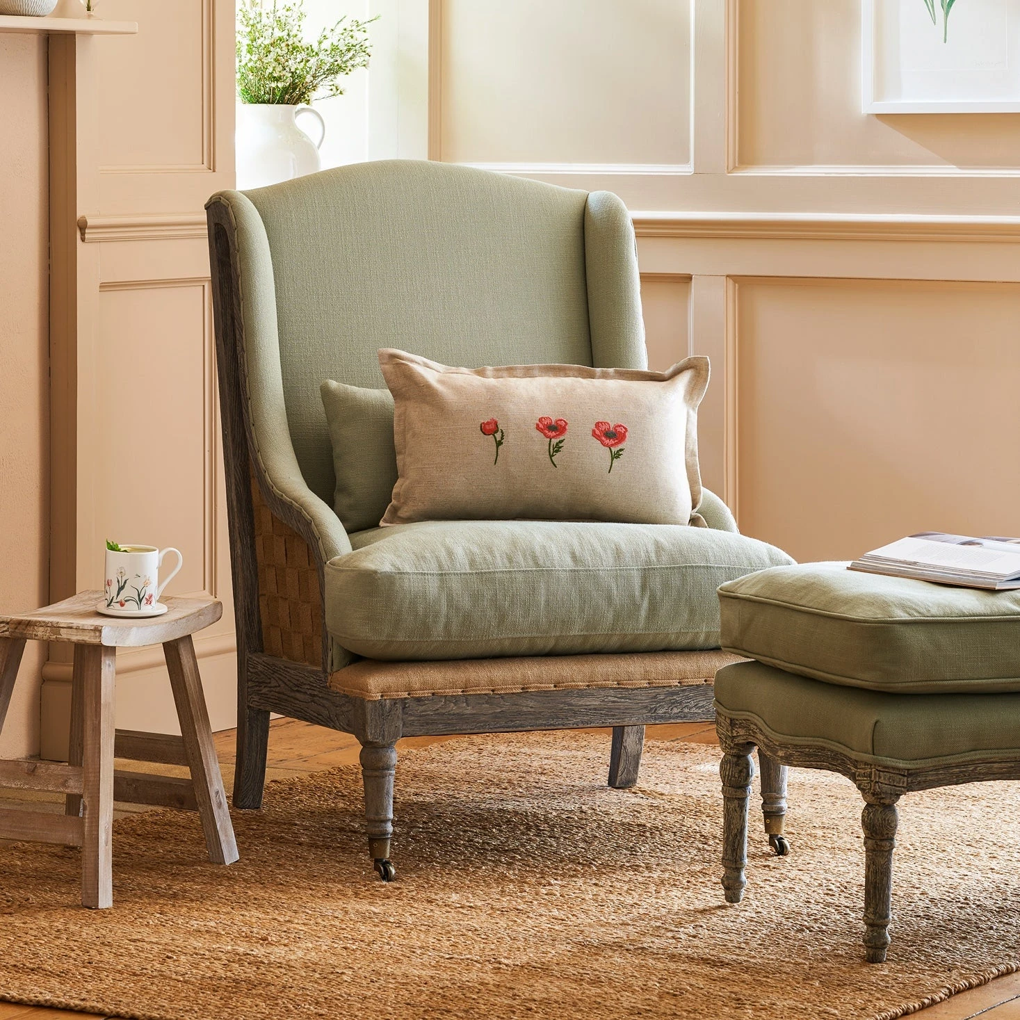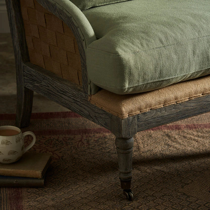 Our Witham furniture collection is classic, elegant and comfortable. This Witham Armchair is upholstered with a linen mix fabric in pale green and will complement any living area or bedroom. Team with the matching footstool for a coordinated look in a cosy corner.